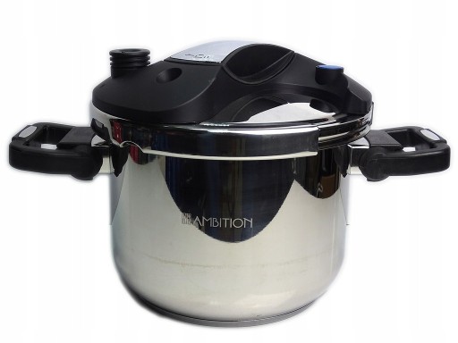 Szybkowar ze stali nierdzewnej ze składanymi uchwytami.