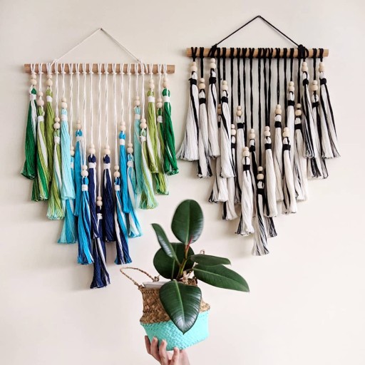 Jeżeli potrzebujesz makramę w innej kolorystyce, zostaw wiadomość z wybraną kolorystyką w wiadomości do zakupu. Mogę pomóc Ci dobrać pasujące do siebie kolory.