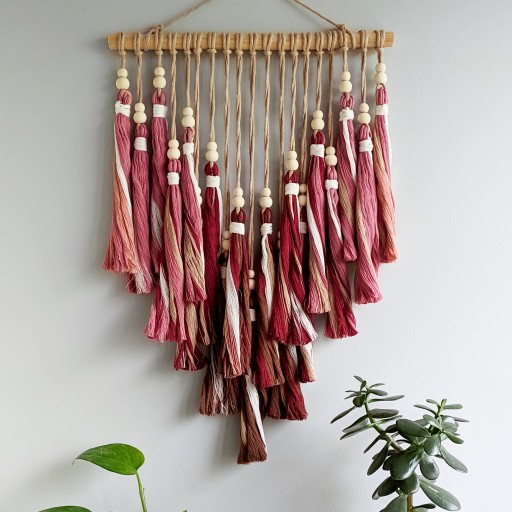 Sznurek z którego wykonana jest makrama, pochodzi od polskiego producenta, który skupuje bawełnianą używaną odzież i przerabia ją na sznurek. To wspaniałe, że moje dekoracje mogą powstawać z materiałów pochodzących z recyklingu.