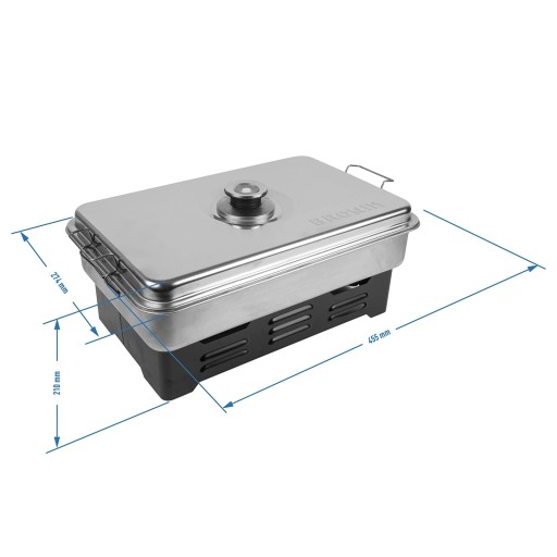 - Niewielkie urządzenie – duże możliwości – mała wędzarnia pozwoli Ci na przygotowanie pysznych wędzonych ryb, mięs, serów i wędlin nawet na niewielkim balkonie. Niewielkie rozmiary ułatwiają przechowywanie.