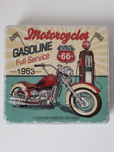 Pudełko METALOWE 23cm POJEMNIK Motor RETRO Prezent