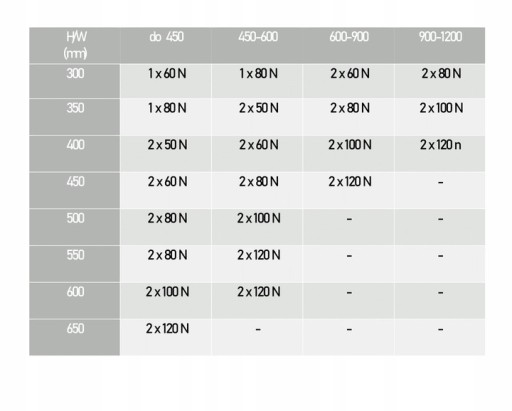 Przy doborze odpowiedniej mocy, prosimy o zapoznaniu się z tabelką obok.