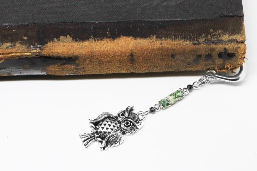 Elegancka zakładka do książki z zawieszką w kształcie sowy z dodatkiem jaspisu trawiastego.