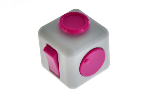 Fidget Cube to wielofunkcyjna kostka stworzona dla osób, którzy odruchowo w sytuacjach stresowych poszukują zajęcia dla swoich dłoni. Każda ścianka kostki wyposażona jest w inny gadżet - przełącznik, joystick, pokrętło, obrotowa kulka, głośne lub bezdźwięczne przyciski.