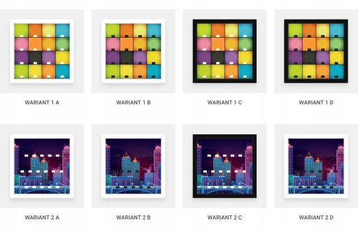 Istnieje możliwość wyboru wzoru tła, koloru ramki oraz koloru klocków (czarny/biały).