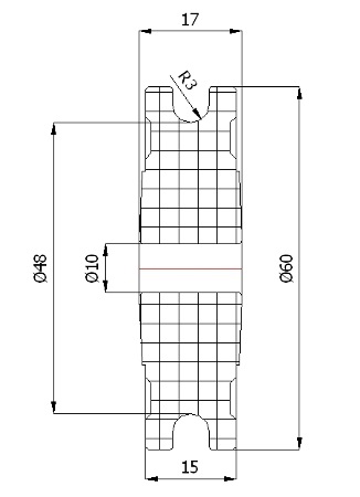 Rolka tworzywowa (poliamid) fi 60mm na linkę: 6mm.
