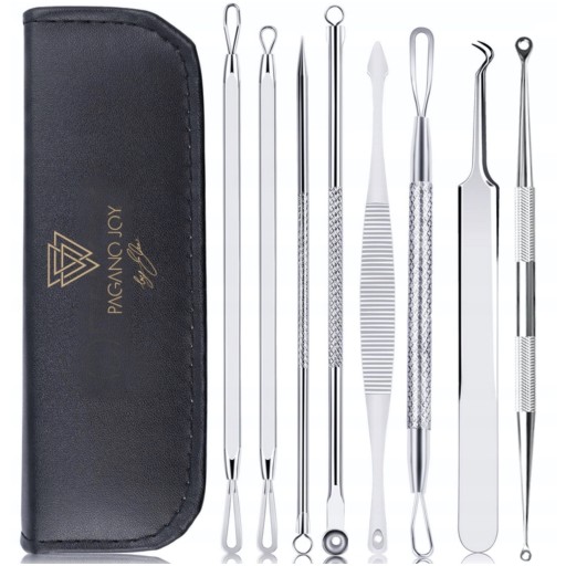 - ✅8 dwustronnych łyżeczek do bezpiecznego usuwania zaskórników, wągrów i pryszczy