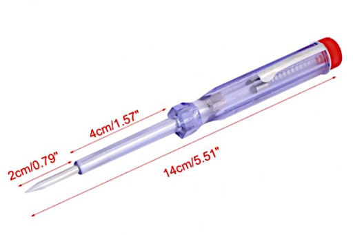 Próbnik napięcia wskazuje nam czy w sprawdzanym elemencie jest napięcie elektryczne. W jaki sposób to robi? Otóż w środku “śrubokręta” (wewnątrz przeźroczystej obudowy) znajduje się neonówka.