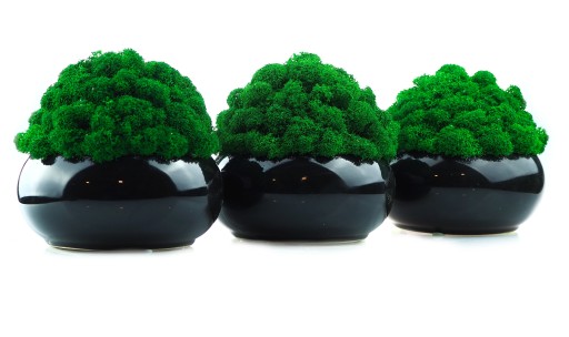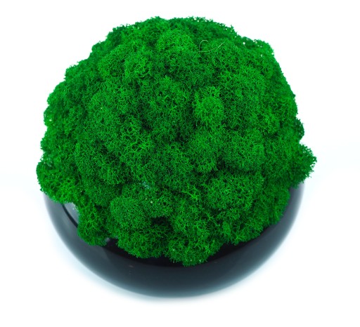 Najwyższej jakości doniczka wykonany z wyselekcjonowanych kępek mchu chrobotek. Kolor mchu intensywnie zielony. Swoją barwę mech zawdzięcza naturalnemu barwnikowi. Zapewniamy, że mech nawet po długim okresie nie zmieni swojej barwy. Jest praktycznie bezobsługowy. Może zostać wykorzystany w łazience w której panuje duża wilgotność. Nie straszne mu również promienie UV, lecz po długiej ekspozycji na ciepło musi zostać delikatnie zroszony mgiełką wody. Pochodzi ze skandynawskich lasów.