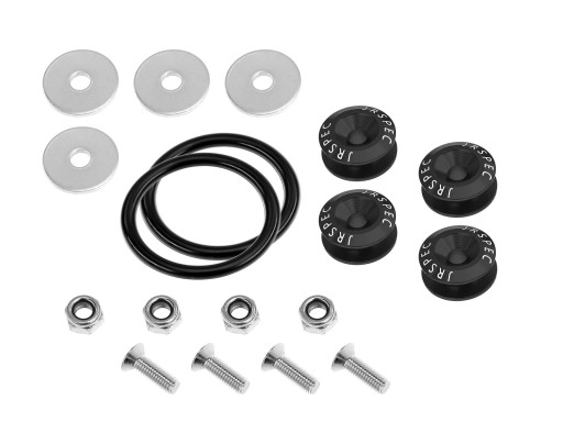 Uniwersalne zapinki marki JRspec wykonane z aluminium o średnicy 24mm. Umożliwiają szybki montaż i demontaż np. zderzaka poprzez połączenie dwóch aluminiowych adapterów gumką. Mogą być zastosowane do maski, klapy, zderzaka, itp. W komplecie 4 zapinki, 2 gumki, śruby wraz z nakrętkami i podkładkami. Solidna konstrukcja zapewnia bezpieczeństwo i wygodę użytkowania. Przeznaczone są do motorsportu, na obiektach zamkniętych.