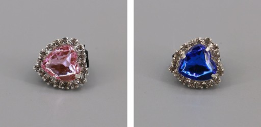 Modele: 1 różowe serce, 2 atramentowe serce, 3 białe serce, 4 wielokolorowe serce, 5 niebieska gwiazdka, 6 biała gwiazdka, 7 różowy prostokąt, 8 niebieski, prostokąt, 9 biały prostokąt, 10 czarny prostokąt, 11 atramentowe koło, 12 fioletowe koło, 13 czerwone koło, 14 brązowe koło, 15 perłowe koło.