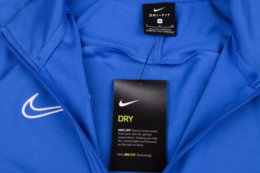 Przedmiotem sprzedawanym na aukcji jest bluza męska marki Nike w kolorze niebieskim z serii Academy 21. Model o klasycznym kroju pozwalającym na pełną swobodę ruchów nawet podczas intensywnych treningów. Bluza świetnie sprawdzi się zarówno na co dzień jak i podczas ćwiczeń, jej miękki w dotyku materiał zapewnia komfort użytkowania. Posiada zamek przeprowadzony przez całą długość, wysoki kołnierz oraz siateczkowe wstawki wspomagające wentylację ciała. Po bokach umieszczono kieszenie na najpotrzebniejsze drobiazgi.
