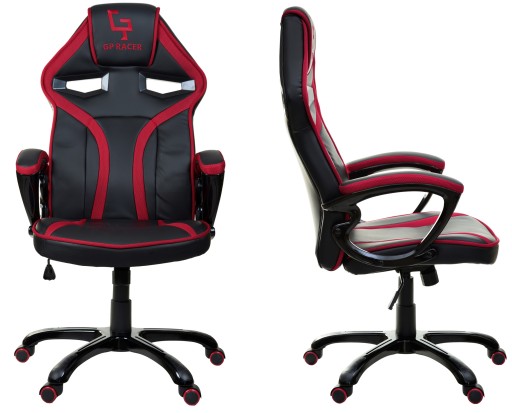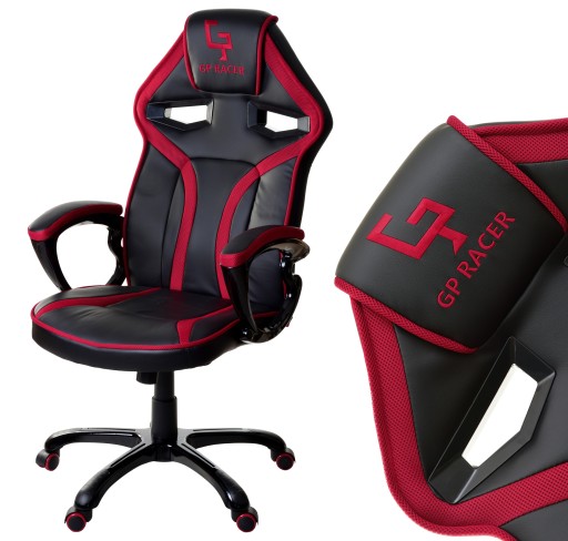 Obrotowy, nowoczesny fotel dla gracza Giosedio GP Racer wykonany ze skóry ekologicznej oraz z tkaniny membranowej. Fotel wyróżnia efektowna lakierowana podstawa i podłokietniki.