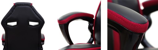 Fotel wykonany jest ze skóry ekologicznej oraz tkaniny membranowej - siateczki. Jest to model o sportowym, gamingowym wyglądzie oraz specjalnemu wyprofilowaniu z przeznaczeniem dla graczy.