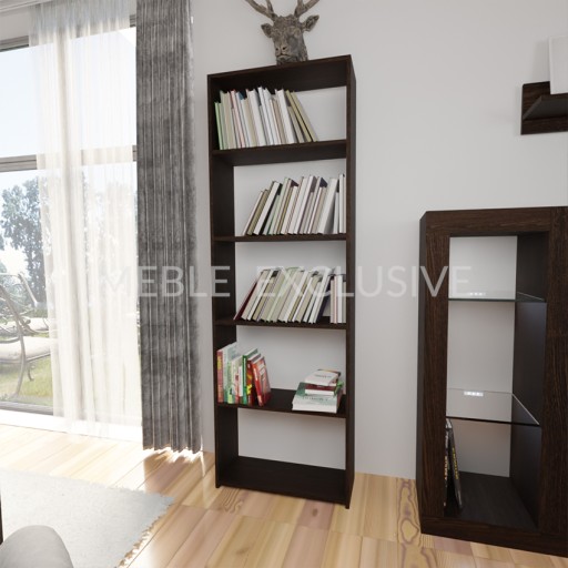 Regał wykonany z solidnej wysokiej jakości płyty laminowanej . Świetnie nadaje się do nowoczesnych salonów, pokoi, czy eleganckich biur.