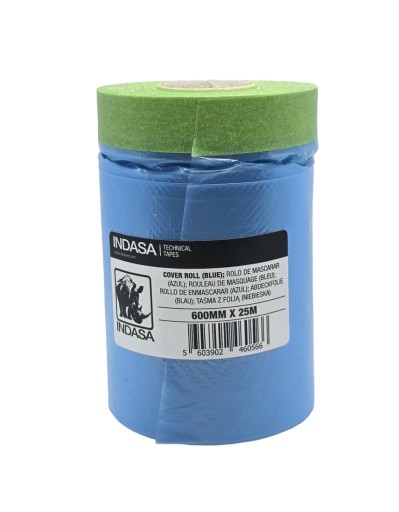 Indasa Cover Roll to połączenie folii ochronnej z polietylenu i wysokiej jakości papierowej taśmy lakierniczej do szybkiego, wielkopowierzchniowego zabezpieczania i maskowania powierzchni elementów w celu ochrony przed zabrudzeniami.