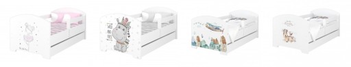 - Łóżko z dwoma nakładanymi barierkami zabepieczającymi. Doskonale chronią dziecko przez upadkiem, można je w dowolnym momencie zdjąć bez dziur po nawirtach.