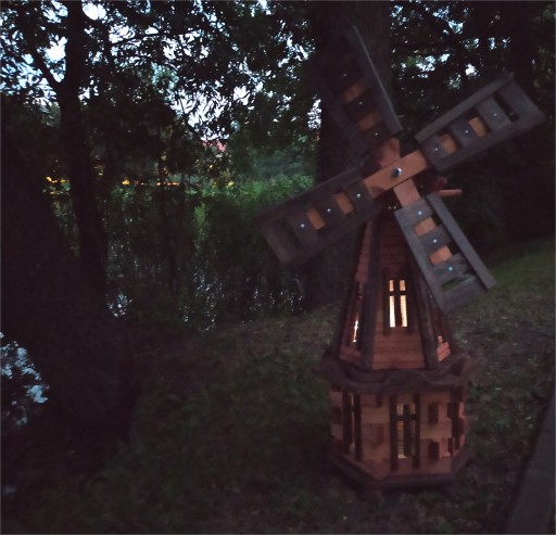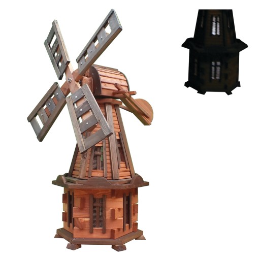 Wiatrak wyposażony jest w moduł solarny LED. Ogniwo solarne (koniecznie skierowane w stronę słońca/południa) pobiera energię i magazynuje w akumulatorku. Czujnik zmierzchowy uruchamia lampki LED po zmroku.