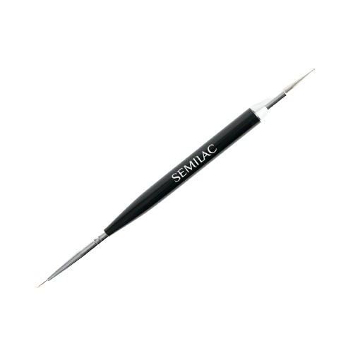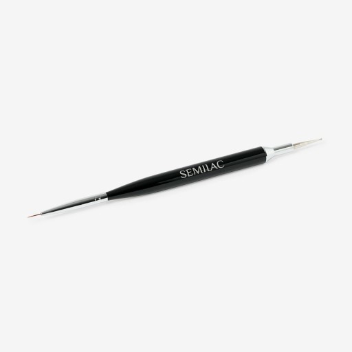 Semilac multitool 2w1 do domowych zdobień to wyjątkowo wygodne i praktyczne narzędzie, w którym zostały zastosowane dwa rodzaje końcówki: sonda zakończona kulką oraz cieniutki pędzelek. Cieniutki pędzelek ułatwi aplikację lakieru hybrydowego pod same skórki. Sprawdzi się również do wykonywania prostych i cieniutkich linii. Przy pomocy sondy, z łatwością usuniesz nieutwardzony lakier hybrydowy
