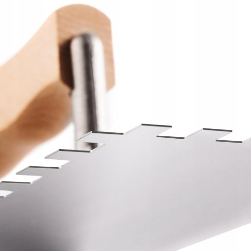 Stalowa paca nierdzewna z drewnianym uchwytem marki COMENSAL z profesjonalnej linii BRAVO WOOD. Do precyzyjnego i szybkiego nakładania klejów samorozpływnych, grubowarstwowych i odkształcalnych na płytkach podczas prac glazurniczych oraz wykonania na nich bruzd, które gwarantują lepszą przyczepność płytki do podłoża.