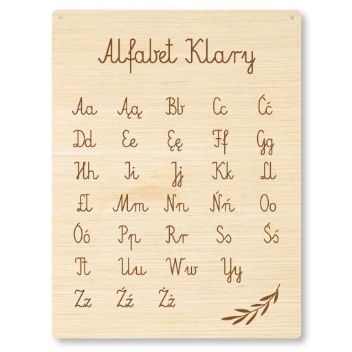 Drewniana tabliczka z alfabetem z imieniem dziecka do powieszenia na ścianę zachęci i pomoże w nauce, dodatkowo będzie piękną ozdobą pokoju.