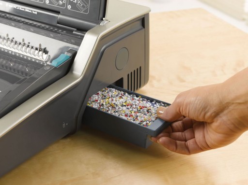 - Łatwa w konserwacji. Duża szuflada na ścinki z możliwością wyjęcia z dwóch stron, szuflada posiada system automatycznego otwarcia boków uwalniający ścinki po osiągnięciu maksymalnej pojemności.