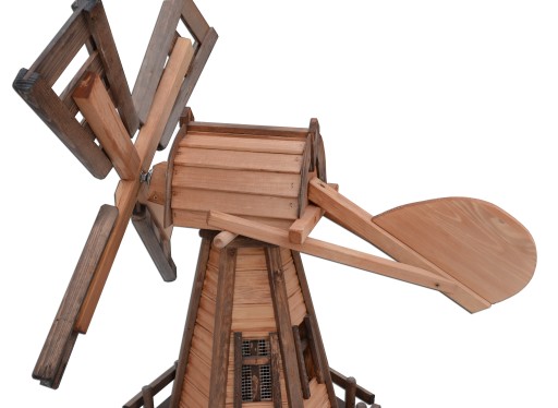 Wiatrak wyposażony jest w moduł solarny LED. Ogniwo solarne (koniecznie skierowane w stronę słońca/południa) pobiera energię i magazynuje w akumulatorku. Czujnik zmierzchowy uruchamia lampki LED po zmroku.