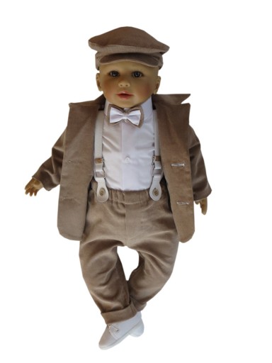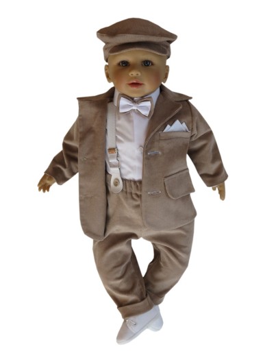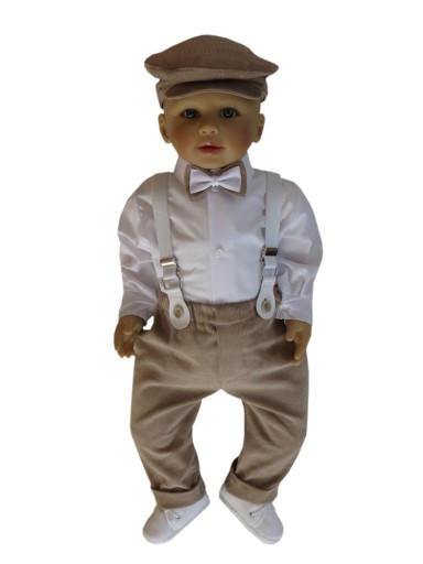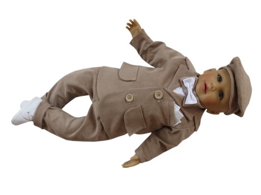 - CZAPKA BEŻOWA - DO WYBORU KASZKIET LUB PILOTKA. W OBU CZAPKACH Z TYŁU WSZYTA GUMECZKA, PODSZYTA BIAŁĄ PODSZEWKĄ. PILOTKA POSIADA SZNURECZEK ZAWIĄZYWANY POD BRÓDKĄ DZIECKA.