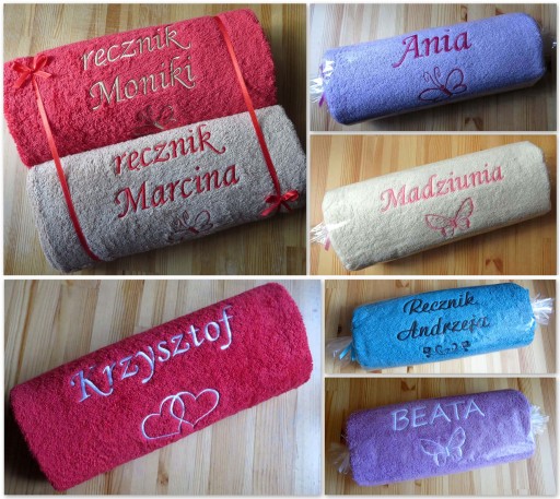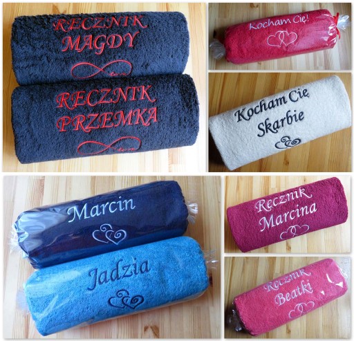 - komplety ręczników z haftem (np. ręczniki w koszu)