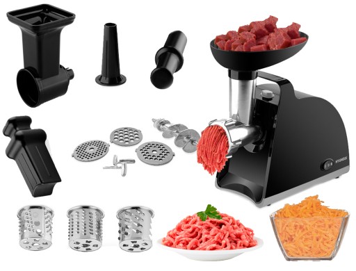 Solidne urządzenie, dla tych którzy chcą przygotować własne kiełbasy i mięsa mielone. Maszynka do mięsa wyposażona w akcesoria na : grube mielenie, średnie mielenie , drobne mielenie, robienie kiełbasy, szatkownica, . Całość wykona z trwałych materiałów, łatwych do rozmontowania i czyszczenia. Użytkownik ma do wyboru 2 biegi (w przód i rewers). Maszynka korzysta standardowo z mocy 1000W.