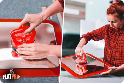 Dzięki FlatPro2 Sucker w łatwy i prosty sposób przeniesiesz WSZYSTKIE delikatne i nieporęczne przedmioty np. właśnie szkło, glazurę czy terakotę. Wystarczy by miały gładką powierzchnię.