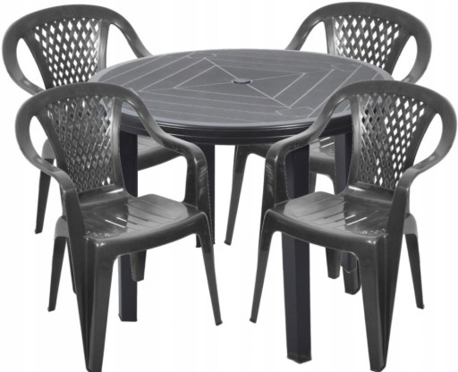 ПЛАСТИКОВЫЙ КОМПЛЕКТ 4+1 СТУЛЬЯ САДОВЫЙ СТОЛ ГРАФИТ