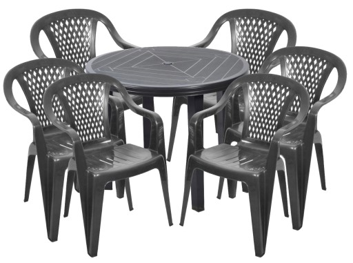 ПЛАСТИКОВЫЙ КОМПЛЕКТ 6+1 СТУЛЬЯ САДОВЫЙ СТОЛ ГРАФИТ