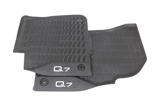 Gumowe dywaniki podłogowe, optymalnie dopasowane do kształtu podłogi Twojego Q7, wykonane są z mieszanki gumy, niezawierającej szkodliwych substancji. Z napisem Q7. Dzięki zamocowaniu w przewidzianych do tego celu punktach w strefie podłogi są one solidnie połączone z podłogą pojazdu.