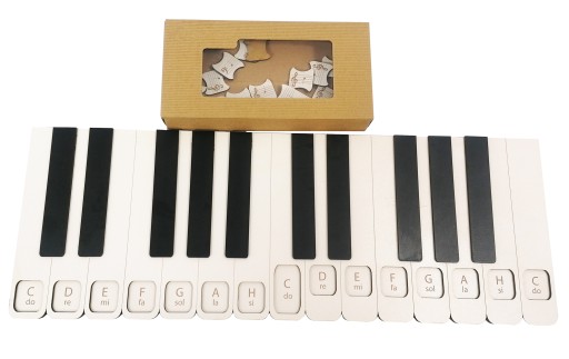 Prezentujemy drewniane pianino edukacyjne do nauki rozkładu nut. Zestaw składa się z pianina z wygrawerowanymi laserowo klawiszami oraz płytek z nutami w kluczu wiolinowym i basowym (15 sztuk). Wielkość pianina wynosi 53 cm x 19 cm. Zestaw wykonano z płyty HDF o grubości 3mm.