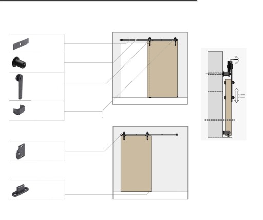 Udźwig do 100 kg na skrzydło. Bezawaryjna eksploatacji przez długie lata. Szyna górna długości 2 m. W każdym zestawie dołączone są dopasowane kolorystycznie odbojniki górne i dolne do drzwi, co wpływa na zwiększenie stabilizacji i zapobiega wypadaniu skrzydła drzwiowego. Jest to system prosty w montażu, w którym można zamontować samodomykacz. Całość wykończona jest w pięknym surowym stylu industrialnym, w kolorze czarnego matu (malowanie proszkowe) TYLKO U NAS w gratisie otrzymujesz pasujący do drzwi uchwyt dwustronny.