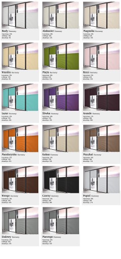 HARMONY to oryginalnie wyglądająca lekko transparentna tkanina w formie harmonijki, która przybiera przestronną formę nadając wnętrzu niezwykle nowoczesny wygląd. Duże zróżnicowanie kolorystyczne pozwala dopasować plisę do każdego pomieszczenia.