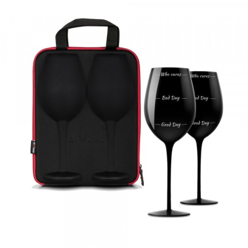 - Zestaw zawiera eleganckie czarne etui oraz dwa kieliszki do wina. Kieliszki pozwalają cieszyć się winem bez konieczności jego dolewania.