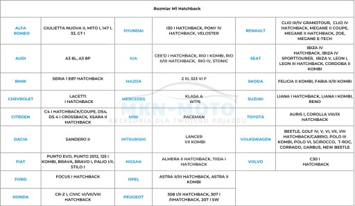 Rozmiar pokrowca: M1 Hatchback