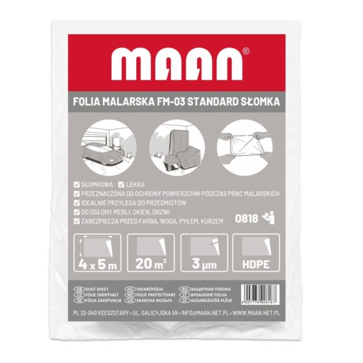 FOLIA BUDOWLANA PLANDEKA MALARSKA OCHRONNA CIENKA STANDARD 4X5 UNIWERSALNA