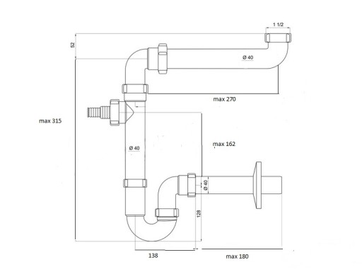 - średnica odpływu: fi 40 mm (standardowy dla zlewu)