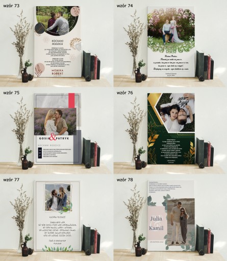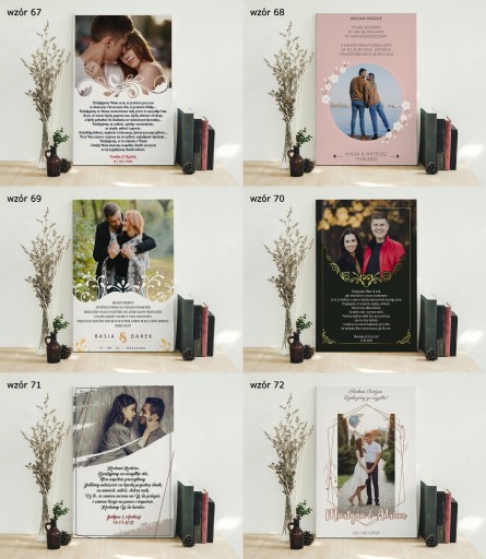 Przedstawione wzory zawierają przykładowe informacje, oraz zdjęcia i podlegają pełnej personalizacji. Po dokonaniu zakupu pamiętaj o: