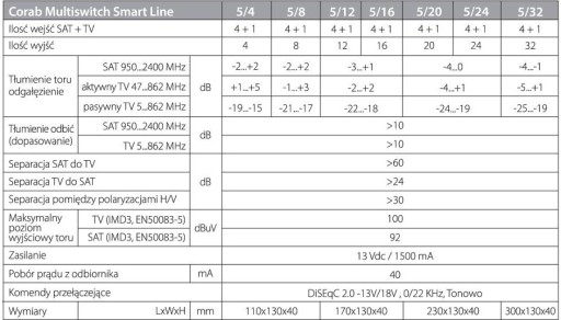 - Separacja pomiędzy wejściami/wyjściami: 30 dB