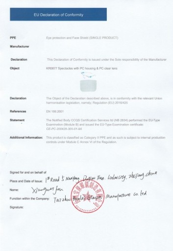 Nasza pełnotwarzowa przyłbica to certyfikowany CE środek ochrony indywidualnej, a zatem nasz produkt jest bezpieczny i zgodny z dyrektywami Unii Europejskiej!