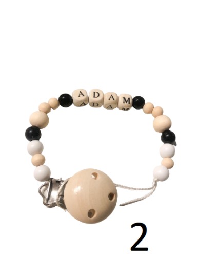 Zawieszka wykonana jest z mocnego metalowo - drewnianego klipsa którym mocno przymocujesz zawieszkę do ubranka maluszka.