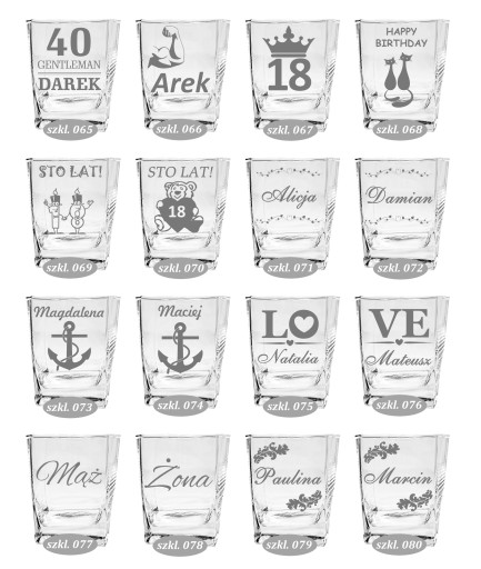 - po zakupie prosimy o podanie nr wzoru/wzorów (wzory znajdują się pod szklanką): np. nr szkl. 027 - Marek 25 urodziny