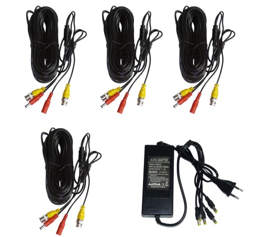 - 4 x 18-metrowy przewód video/zasilanie do kamer.