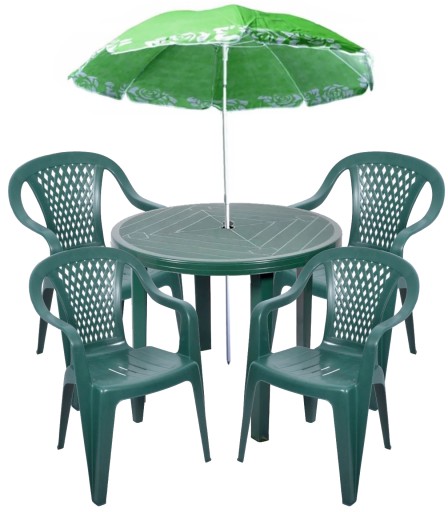 4+1 ПЛАСТИКОВЫЙ КОМПЛЕКТ СТУЛЬЯ СТОЛ ЗОНТИК ЗЕЛЕНЫЙ