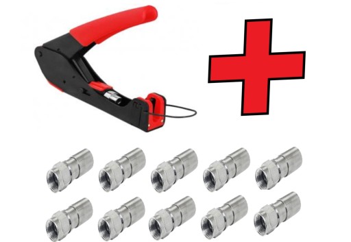 Zaciskarka do wtyków + 10 wtyk F kompresyjny HQ