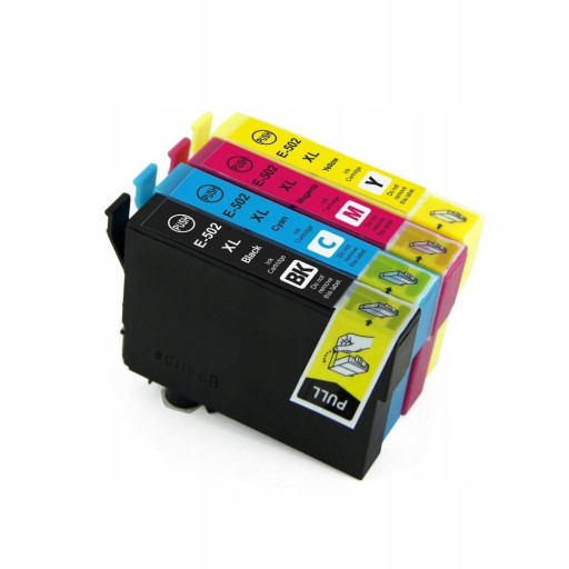 NAJWYŻSZEJ JAKOŚCI, HERMETYCZNIE ZAFOLIOWANE ZAMIENNIKI T502 502XL NAJNOWSZYM CHIPEM CMYK DO DRUKAREK FIRMY EPSON, POJEMNOŚĆ XL.